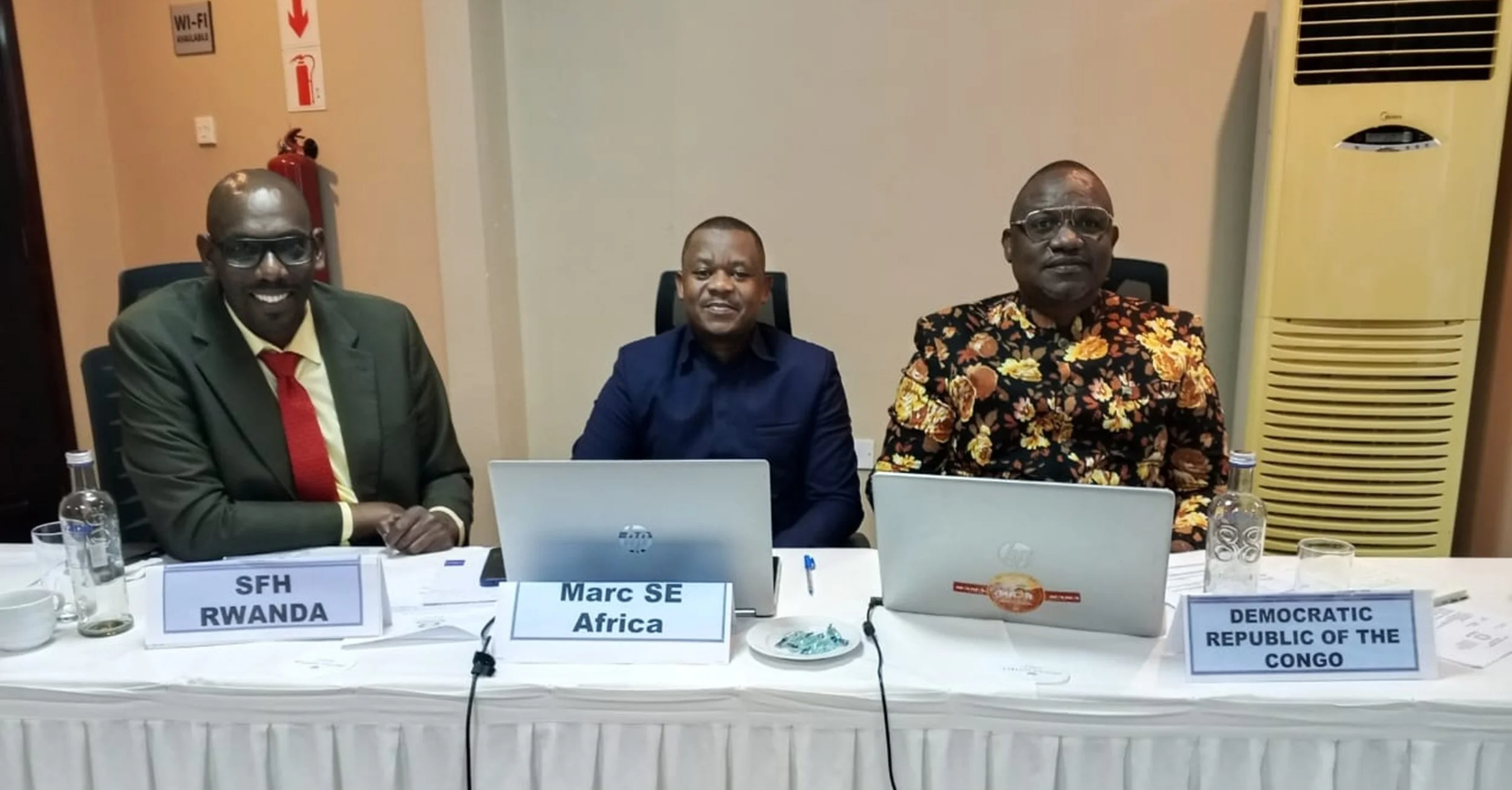 MARC SE-Africa representative, Dr Eulambius Mlugu, with participants from the DRC and SFH Rwanda during the meeting.